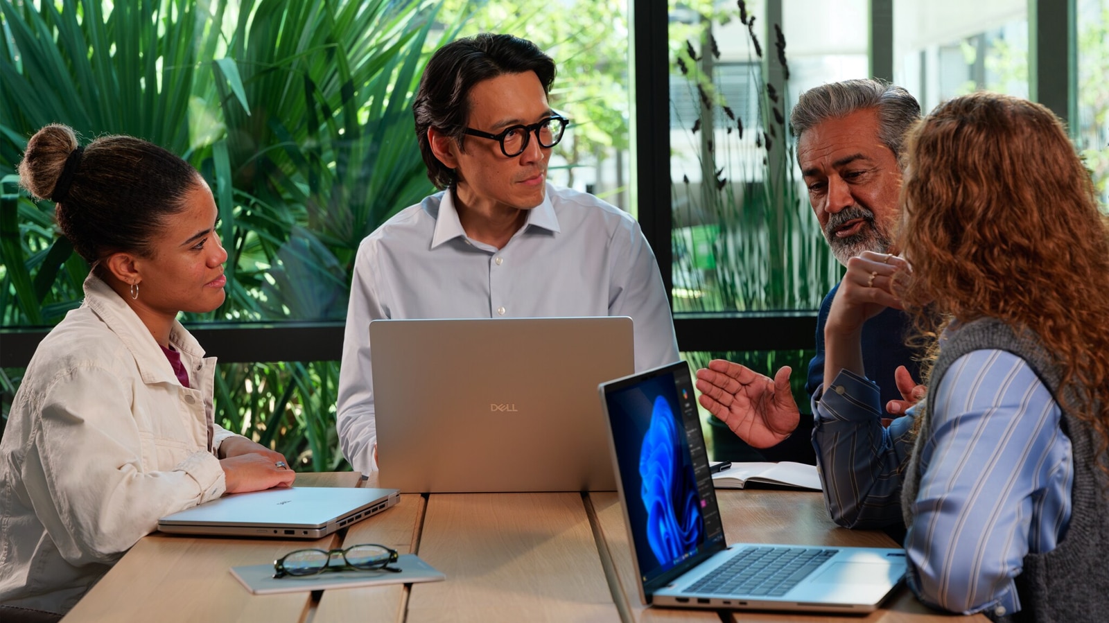 Bądź w kontakcie i zrób więcej dzięki Microsoft Teams i efektom Windows Studio. Teraz możesz wyeliminować rozpraszające obrazy i dźwięki i ulepszyć jakość wideorozmów.