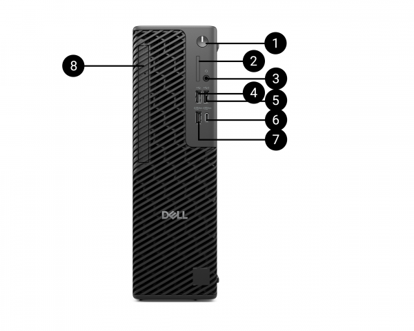 - Dell Pro Max Slim : | Przód | : 1 port USB 3.2 drugiej generacji (10 Gbit/s) | 1 port USB 3.2 Type-C® generacji 2x2 (20 Gbit/s) | 1 port USB 2.0 (480 Mbit/s) z funkcją PowerShare | 1 port USB 2.0 (480 Mbit/s) | 1 gniazdo zestawu słuchawkowego | Tył | : 1 port RJ45 10/100/100 Mbit/s | 3 porty USB 3.2 pierwszej generacji (5 Gbit/s) | 1 port USB 3.2 Type-C® drugiej generacji (10 Gbit/s) | 2 port USB 2.0 (480 Mbit/s) z funkcją PowerShare | 3 porty DisplayPort™ 1.4a (z obsługą HBR3) | 1 port opcjonalny (VGA, HDMI 2.1 FRL, DisplayPort™ 2.1 UHBR20, USB 3.2 drugiej generacji (10 Gbit/s) | USB 3.2 Type-C® drugiej generacji (10 Gbit/s) z trybem alternatywnym DisplayPort™| port Thunderbolt™ 4 | port Type-C® generacji 2x1 (10 Gbit/s) tylko do transmisji danych | port światłowodowy LC) | 1 port szeregowy starszego typu (opcjonalnie) | 1 port Ethernet RJ45 (5 GbE) (opcjonalny)