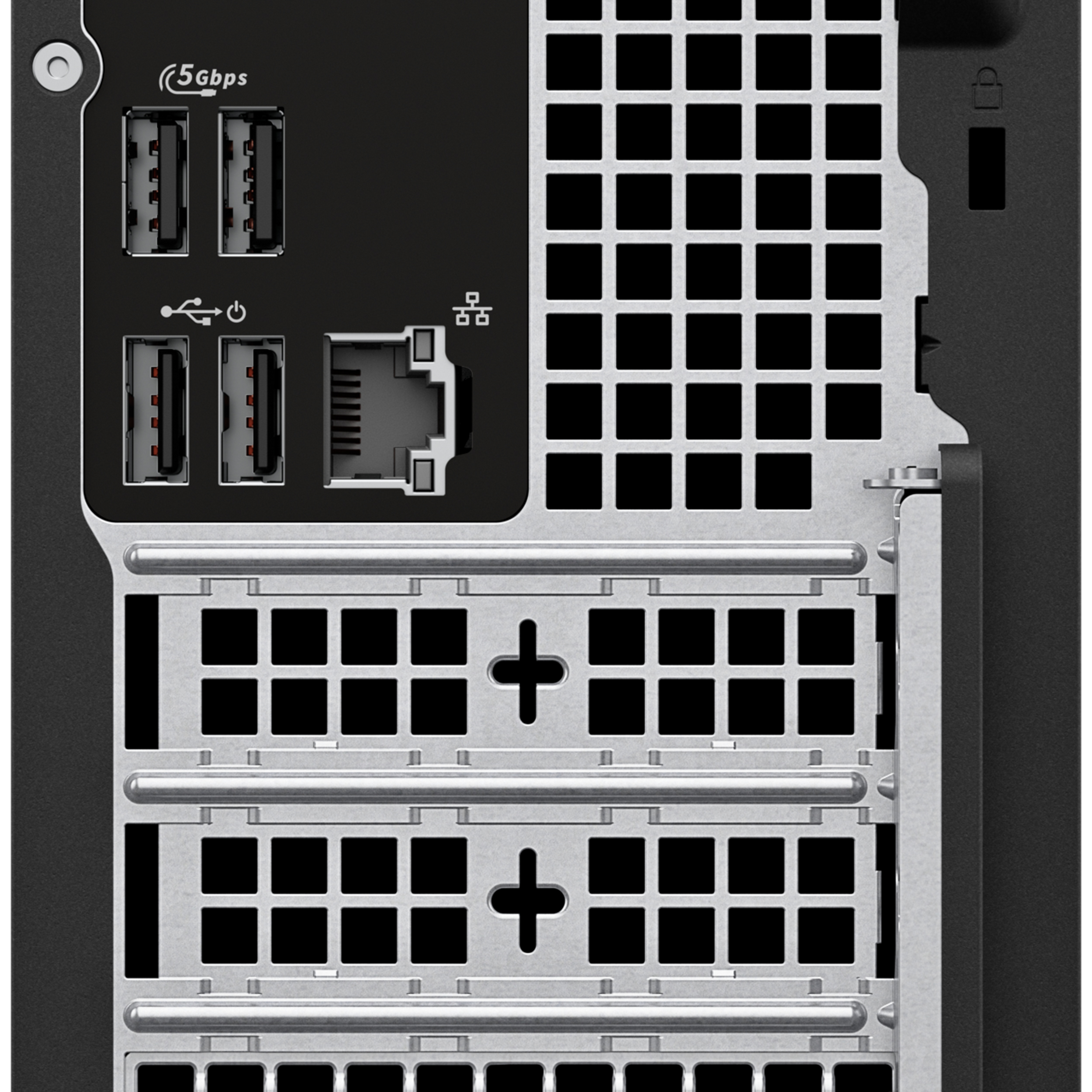- Dell Slim Przód: 1 Czytnik kart pamięci (opcjonalnie) 1x Gniazdo słuchawkowe, 2x porty USB 2.0 Type-A, 1x port USB 3.2 Type-A ,1x port USB 3.2 Type-C ; Tył: 1x DisplayPort™ 1.4a, 1x HDMI 2,1, 2x porty USB 3.2 Type-A, 2x porty USB 2.0 Type-A , 1x Gniazdo zabezpieczenia Kensington, 1x Port RJ45 Ethernet (1 Gb/s)